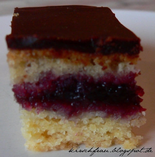 Je nachdem welche Konfitüre man verwendet, schmeckt der Kuchen immer ein bischen anders, unsere Lieblingssorte ist schwarze Johannisbeere, mit Aprikose schmeckt es ebenfalls sehr lecker.